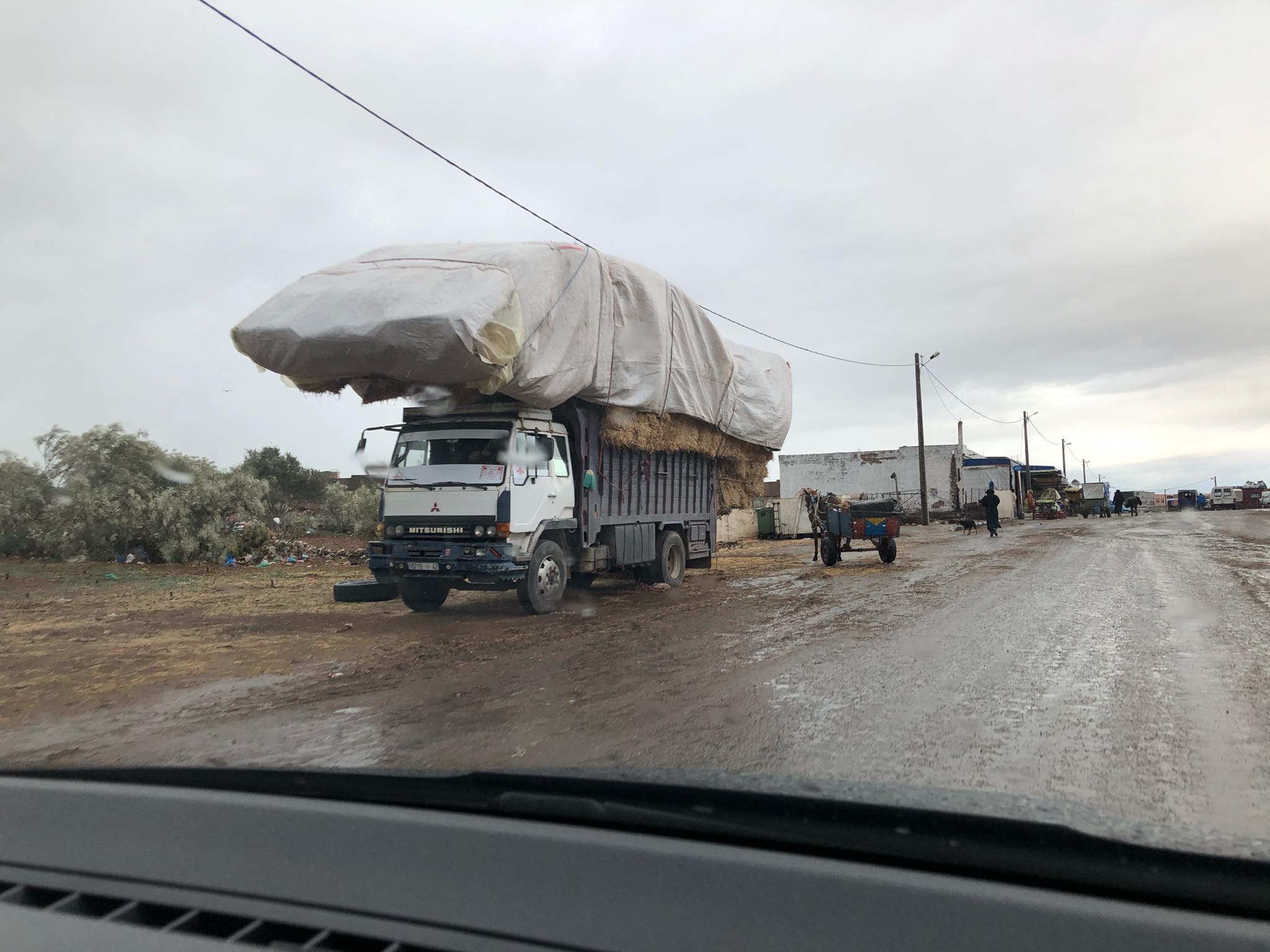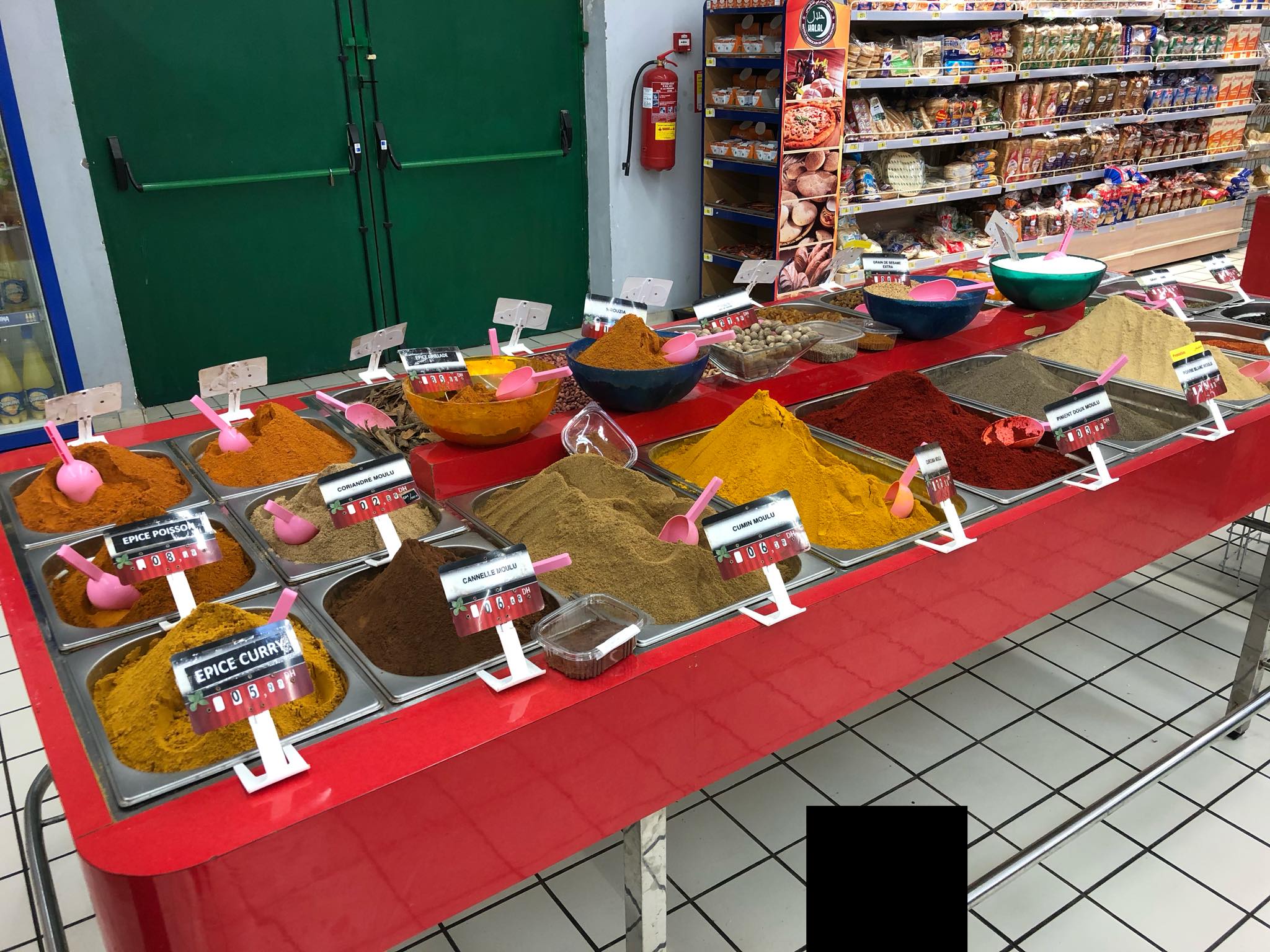 Ani jsme nešli dovnitř, ale rovnou skočili do auta a zajeli jsme na nákup. Díky francouzskému vlivu tady každé město má Carrefour, který víceméně odpovídá tomu, na co jsme zvyklí z Čech. Co tady mají navíc jsou veliké sekce koření, ořechů a oliv, které se berou na váhu. Taky je výrazně větší nabídka ryb a trochu jiná nabídka masa: není tady problém sehnat například celé kůzle (normálně ho na rozdíl od pouličních řeznitctví mají ve vitrině). A naopak úplně chybí vepřové a díky tomu i prakticky všechny šunky, salámy a slaniny.