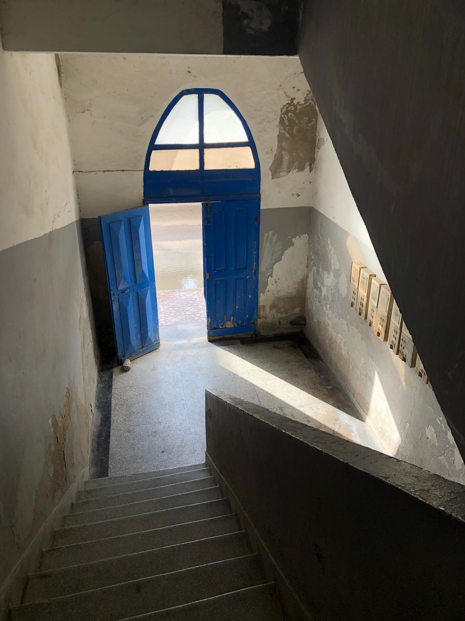 Z kavárny chceme ještě chvilku pocourat v Medině, hlavně Lucka. Tady se nám líbí: je to klidnější než Marakéš nebo Fez, není to tolik turistické, i když turistických obchůdku mraky, ale nikdo nám nic nevnucuje a je tu pořád mnohem míň místních než turistů. Je tu klid, část obchůdků ještě neotevřela, tak teprve tak nějak uklízí. Je tu celkem čisto: v jiných Medinách je neuvěřitelné množství odpadků, vlastně všude po městě. Je to tu v tomhle dost kontroverzní: U obchodníků často vidíte, jak si uklízí svůj obchod nebo čistí zboží (černoši neustále oprašující brýle, šperkař stírající podlahu, před obchody prodavači zametají nebo v tomto případě velkou stěrkou stahují vodu z hrbolaté ulice do kanálu), ale pak zajdete za roh nebo k moři a za rohem nebo pod převisem leží nesmyslné množství plastových lahví a papírků od sladkostí. Na trzích pak bývá po zemi kde co, odřezky od zeleniny a ryb počínaje, jakýmikoliv papíry a dalším odpadem konče.