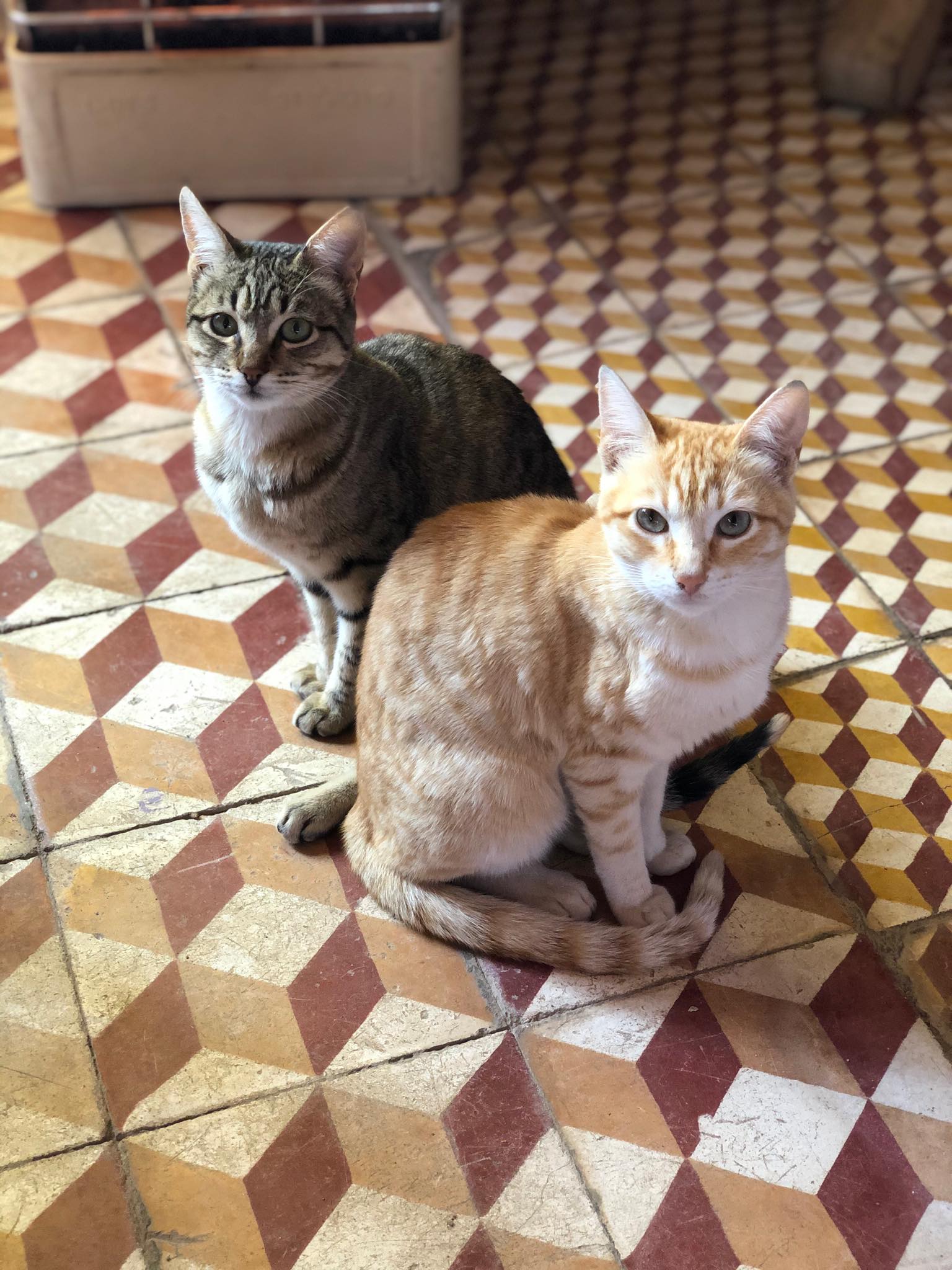 Objednáváme samozřejmě marocký salát a tažín s masovými koulemi pro Lucku, Jirka váhá, nabídku tu mají malou, nakonec volí berberskou omeletu (po ujištění číšníkem, že je fakt dobrá :)). Nakonec to Jirkovi ale moc nesedlo, nebylo to špatné, ale nadšený nebyl. Takže si kousek omelety vysloužilo i kotě. Bohužel Lucka zase dostala maslové koule s vajíčkem, takže to vlastně vypadalo podobně. Takže tak nějak vybrala ty kuličky a to, co nakonec vypadalo prakticky stejně jako Jirkova omeleta, zůstalo pro kočky.