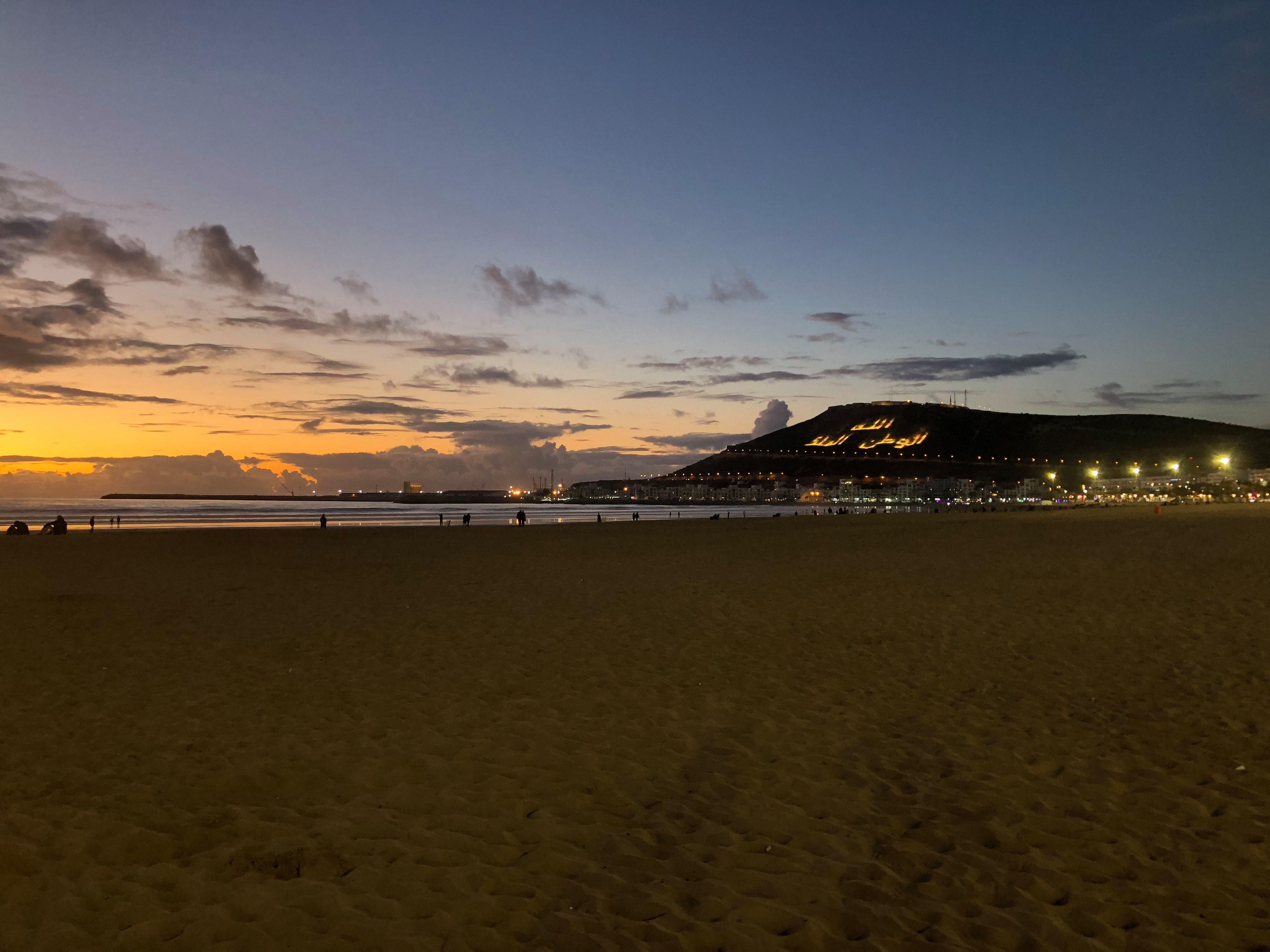 Procházíme promenádou až nakonec, do maríny, pak se vracíme stejnou cestou zpátky. Atmoféru jsme nasáli a celkem se nám tu líbí, i když je to takové nemarocké. Agádír je zase úplně jiné město. Rušné, jedná se o letní plážové středisko, s velkým hotelovým komplexem. Zajímavostí je, že je to město vlastně úplně nové, protože ho v roce 1960 postihlo velké zemětřesení a prakticky ho srovnalo se zemí. Bohužel se kvůli tomu nedochovaly žádné památky, ale zase díky tomu dostalo město šanci naplánovat se a postavit se znovu se všemi moderními nároky. Vlastně na nás působilo jako moderní evropské plážové město. Plné lidí (většina místních), kaváren a restaurací a luxusních obchodů. Z turismu žije hodně, uvidíme, jestli zítra uvidíme i nějakou chudší část. A těšíme se na trh a chceme zkusit i ten rybí.